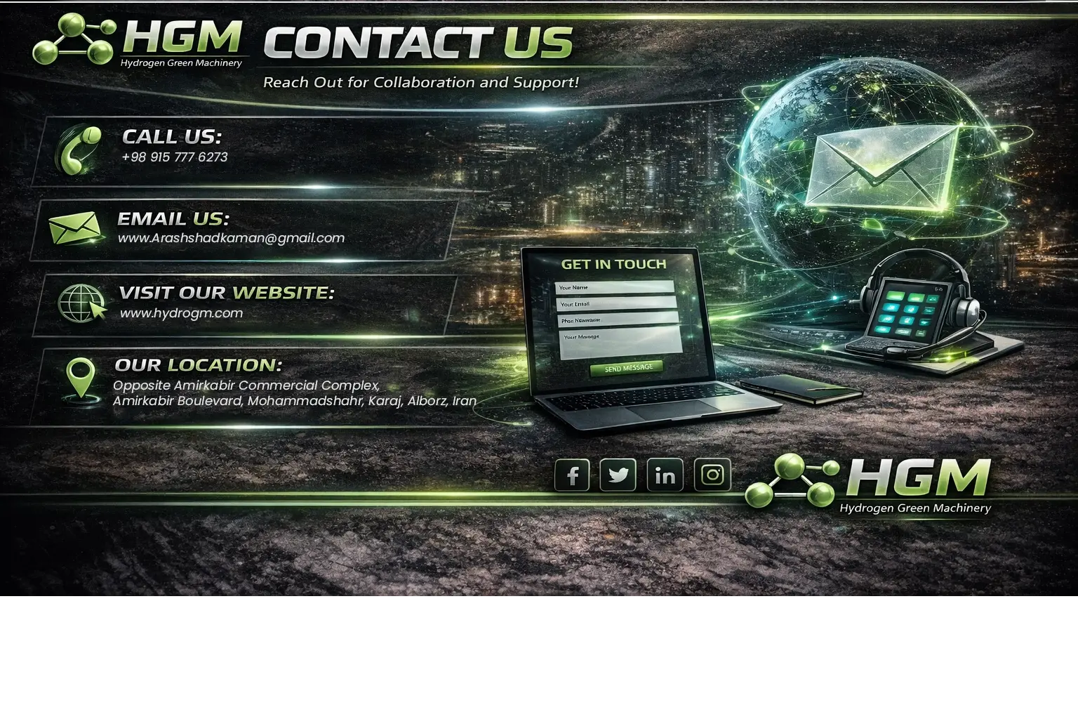 Artboard 1 Contact Us Click the button below to contact us for questions, support, or inquiries about our services and solutions. We are here to help and guide you with any requests you may have quickly and efficiently. Learn more Home Pioneering Green Hydrogen Solutions Clean energy innovation since 2007 Hydrogen systems for industry and mobility Reducing emissions and fuel consumption Building a sustainable, zero-carbon future Learn more Articles Click the button below to read our articles covering insights, updates, and useful information for everyone. Discover helpful tips, trends, and best practices to improve knowledge and get inspired in your work. Learn more About Us Click the button below to read about our vision, mission, and core values guiding all we do daily. Discover the long-term goals we aim to achieve to improve services and positively impact the community. Learn more Products Click the button below to explore our products, designed for quality and innovation in every category we offer. You will discover features, options, and benefits crafted to meet your needs and enhance your experience with us. Learn more Cooperation Click the button below to explore our cooperation opportunities and learn about our business plans available for download and easy implementation. Discover ways to collaborate, partner, and achieve shared goals efficiently. Learn more Agencies Click the button below to see our agencies around the world and learn how we provide quality services in regions globally. See offices, partnerships, and locations strengthening our network. Learn more